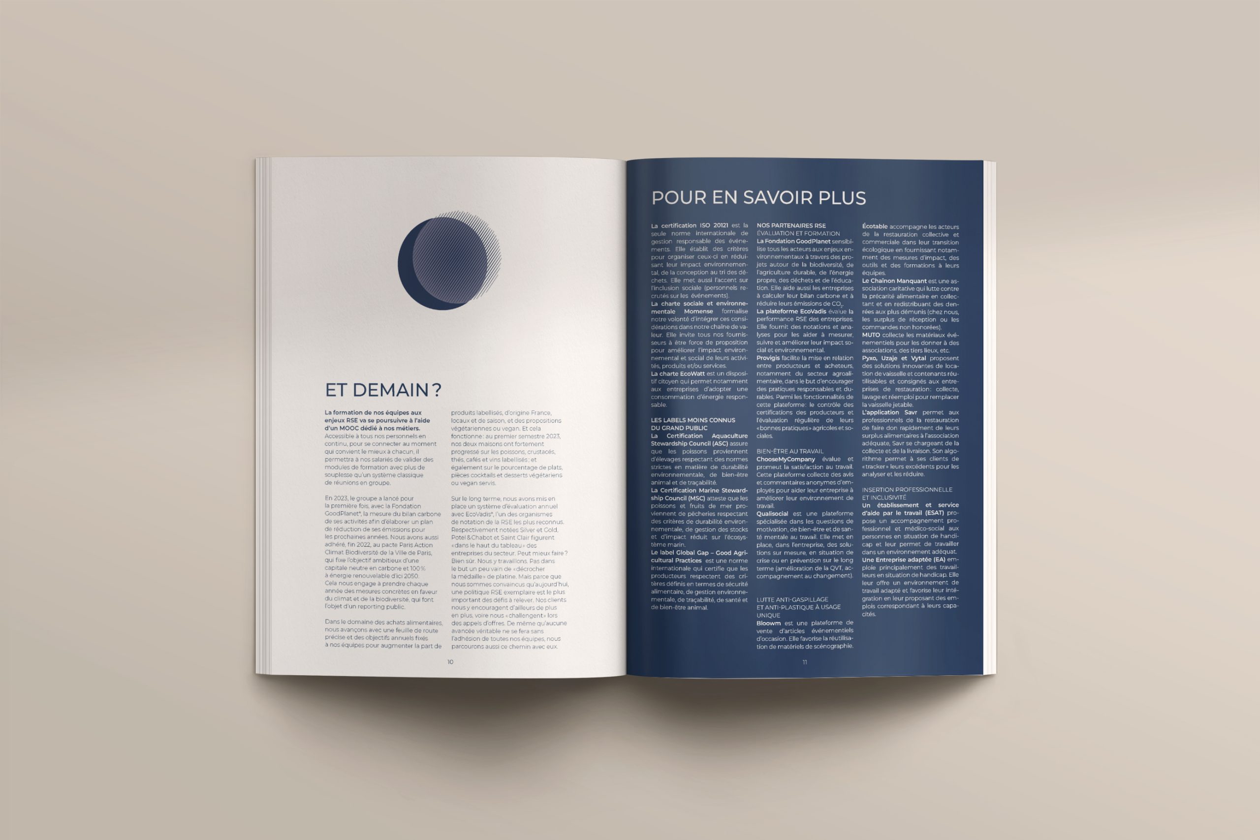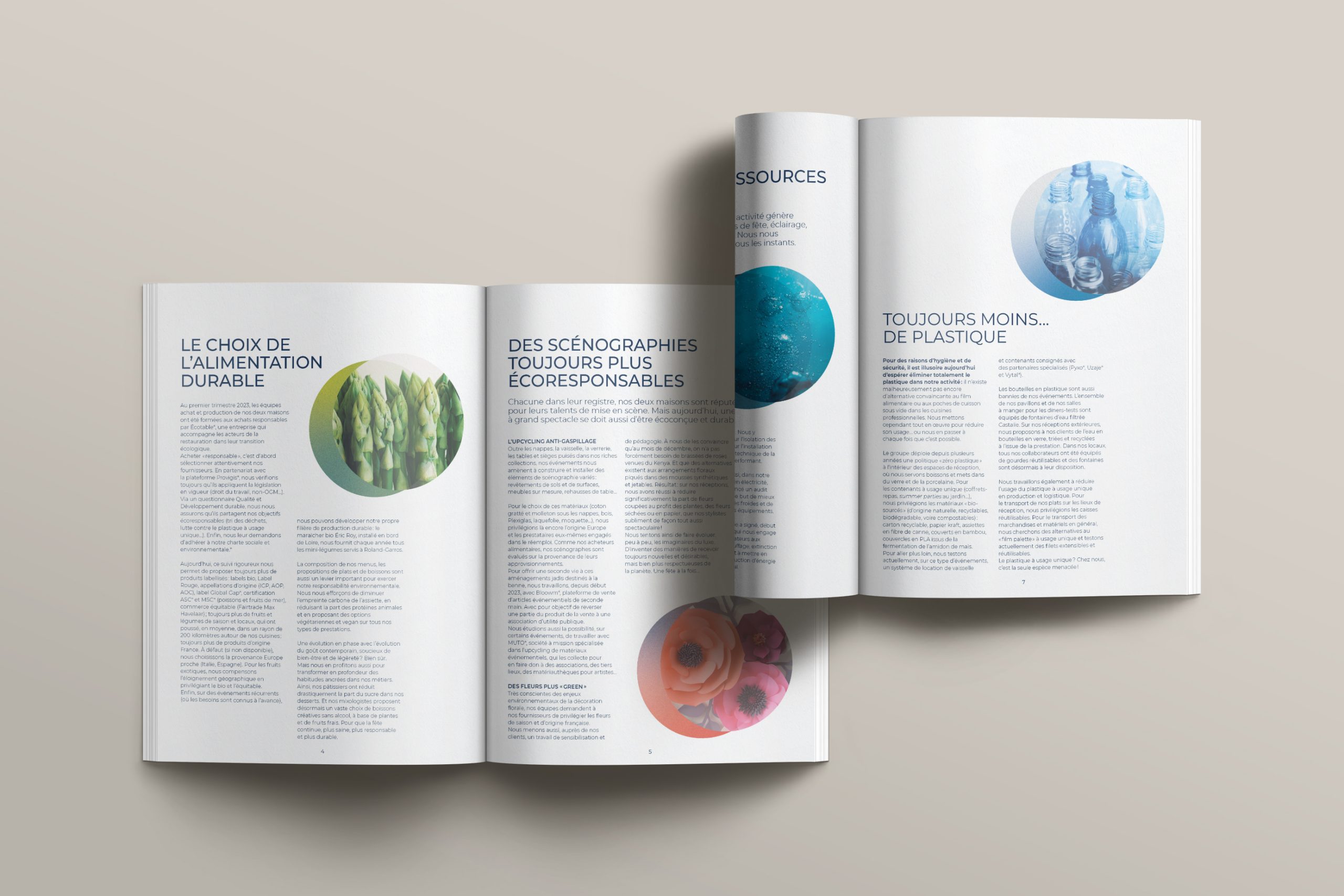 La création de l’entité Momense ayant notamment pour but de conjuguer l’ensemble des efforts liés à la RSE au niveau groupe, il a été demandé à l’agence de concevoir et rédiger un livret présentant l’ensemble des initiatives engagées. En partant du paradoxe identifié, entre d’un côté l’activité de Momense consistant à créer et produire de grands événements festifs et généreux, et de l’autre l’exigence de davantage de sobriété et de durabilité, l’agence a mené plusieurs entretiens avec la responsable RSE du groupe.